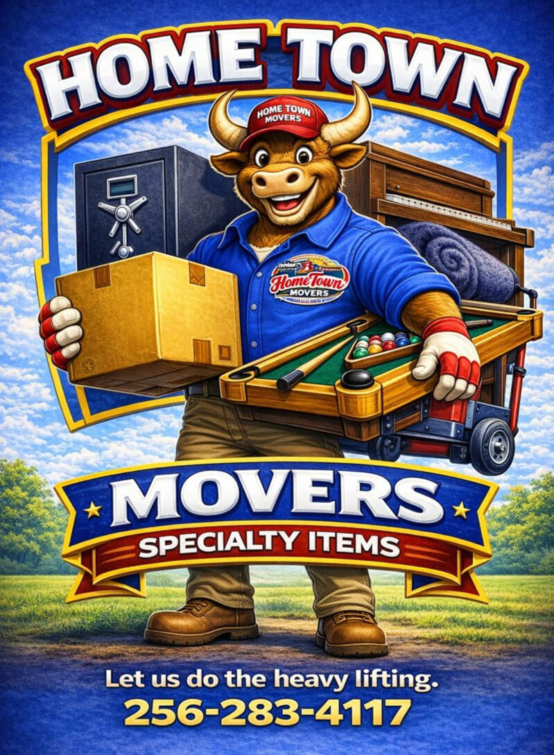 Home Town Movers is a licensed and insured professional moving company based in Oxford, Alabama, proudly serving Calhoun County and surrounding areas. With years of hands-on experience, our local team specializes in residential and commercial moves, including apartments, homes, offices, and long-distance relocations.We handle packing, loading, unloading, furniture disassembly and reassembly, and specialty items such as pianos, safes, pool tables, hot tubs, and heavy equipment. Whether you’re moving across town or across the state, we provide honest pricing, reliable crews, and careful handling—without the stress.At Home Town Movers, we believe professional movers are more affordable than most people expect and worth every dollar for the peace of mind. When you’re ready to move, call or text us anytime for fast quotes and dependable service from a team that treats your move like it’s their own.📍 Serving Oxford, Anniston, Jacksonville, Pell City, and surrounding Alabama communities.📞 Call or Text: 256-283-4117
